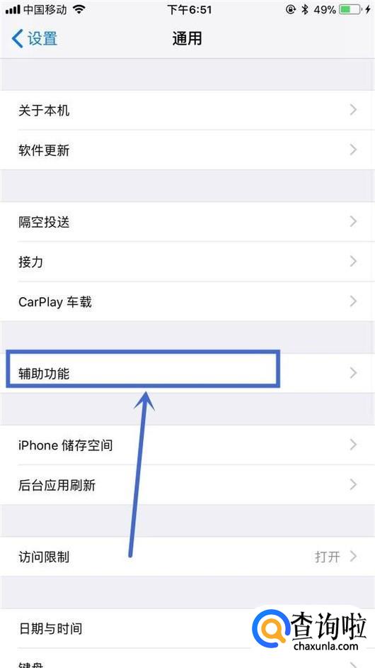 接着点击辅助功能,如下图所示。