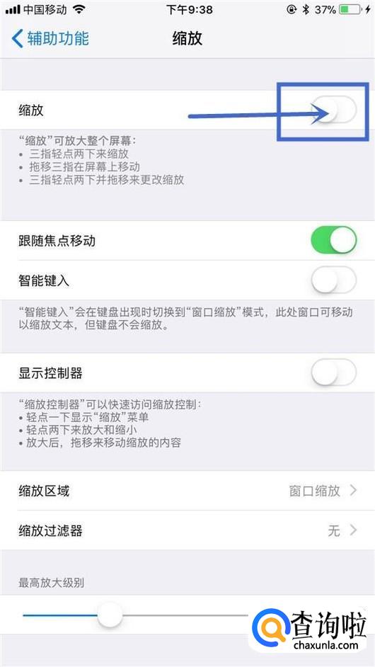 接着点击开启缩放功能的开关,如下图所示。