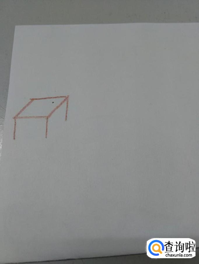 先用棕色笔在纸上画一个平行四边形,在平行四边形的三个角分别向下画一条竖线,表示凉棚。