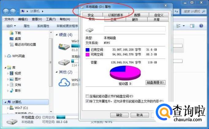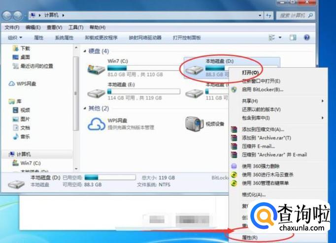 然后右击D盘,在下拉菜单中选择【属性】,如下图所示: