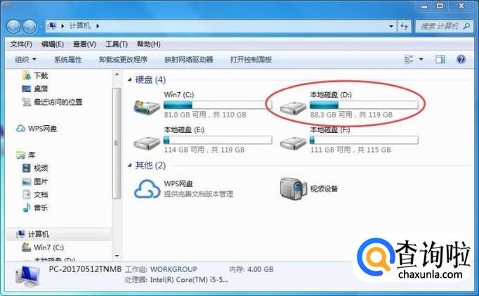 打开我的电脑,然后选择某一个盘,比如D盘,如下图所示:
