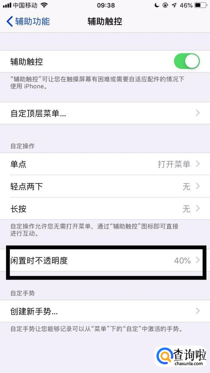 接着点击闲置不透明度可以设置我们想要的小白点透明度。