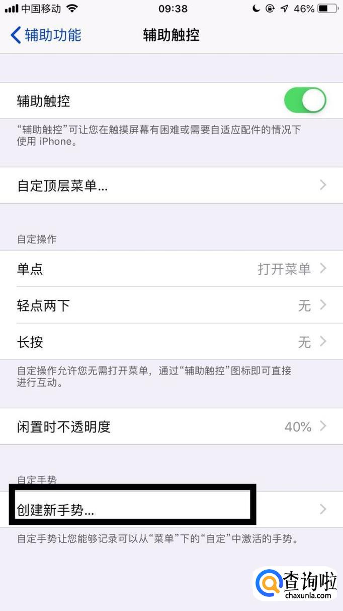 最后点击创建新手势,可以设置我们想要的小白点手势。