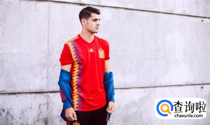 西班牙队的主场球衣采用红,黄,蓝三色条纹,条纹彼此形状不同。三色条纹相互交织形成一道闪电样的形状,寓意着像闪电一样的速度,力量和气势。球衣上的点点滴滴无不体现国家荣耀。