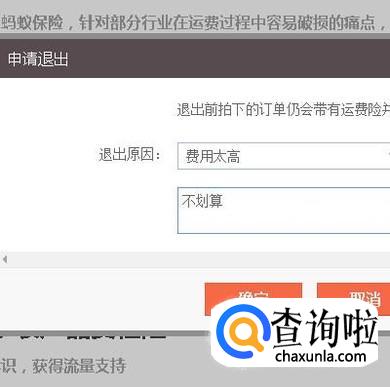 鼠标点击此开关,下方展开相关内容,再在“申请退出”这里,点击一下,弹出一个对话框,在此框中输入退出申请退出的原因,再点确定。点确定后,成功退出卖家运费险。