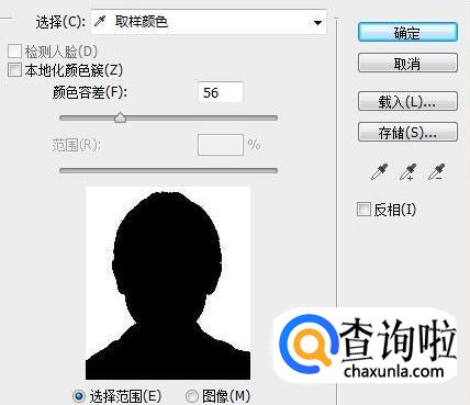 在打开的“色彩范围”窗口中,调整“颜色容差”,直到背景色与人物明显分开时为止,然后点击“确定”按钮。