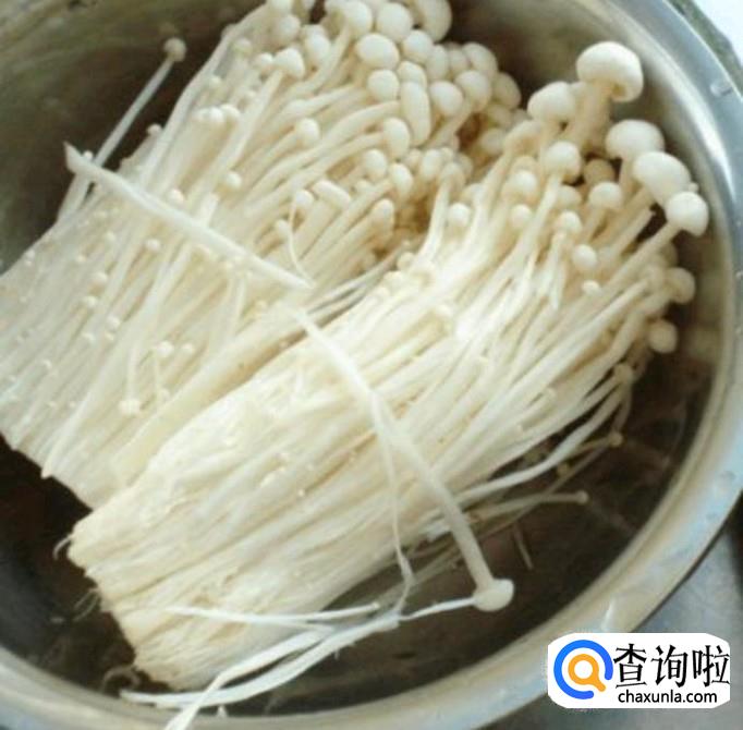 首先准备一些金针菇,洗干净后用刀切掉根部,再挤出水份也可沥干,准备一些蒜蓉。