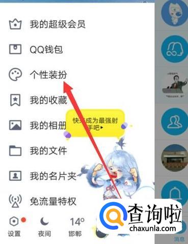 进入之后,找到“个性装扮”,点击并进入,如图所示。