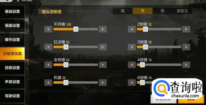 进入之后,就可以对灵敏度进行设置了,如图所示。