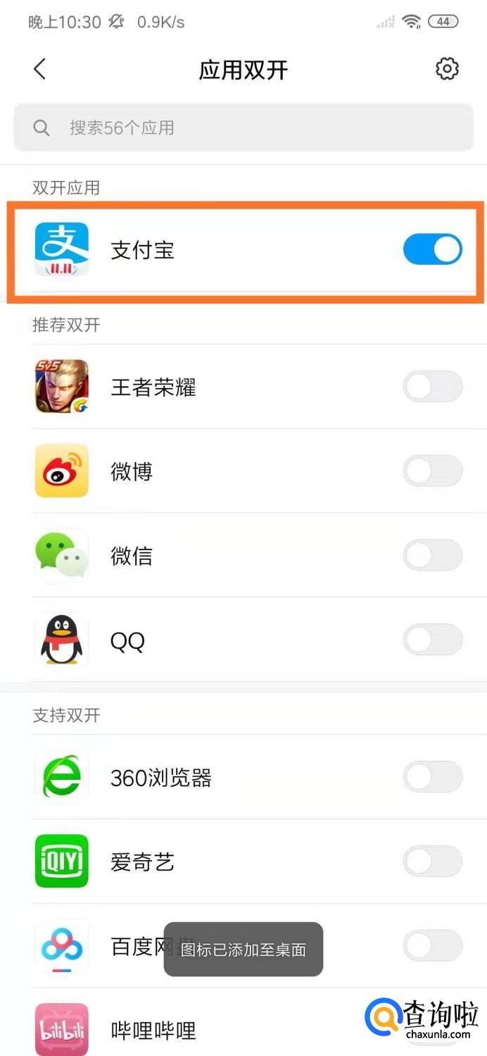 如下图所示就可以设置支付宝分身了。