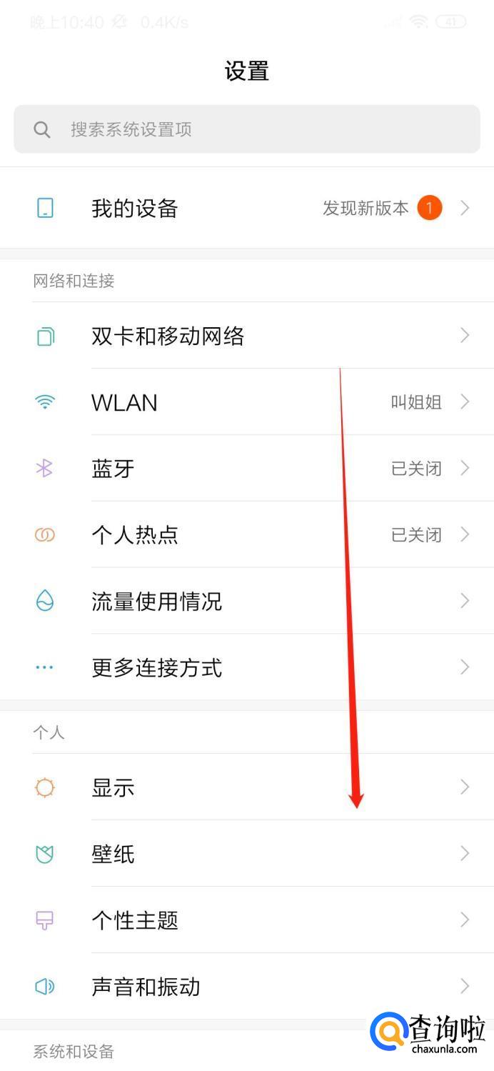 来到“设置”界面后,往下滑。