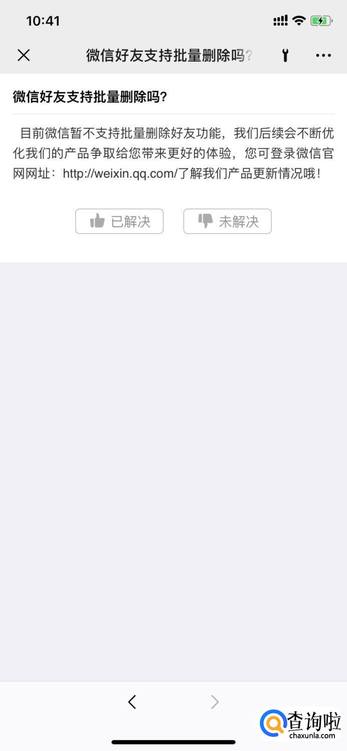 我们首先可以在微信的帮助与反馈里知道,微信好友是不支持批量删除的,目前好友只能一个个删除。