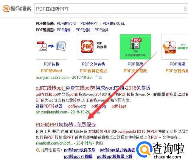 进入之后,搜索“PDF在线转PPT”,点击并进入,如图所示。