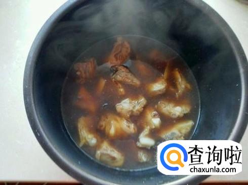 一般煮一个半小时左右,肉就煮好了,打开盖子,加一些生抽和老抽以及白糖食盐放进去一起煮,直到肉变得很软烂为止。