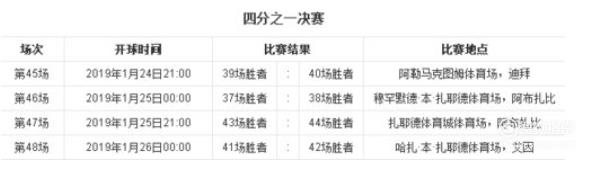 2019亚洲杯赛程安排 2019年亚洲杯赛程时间表