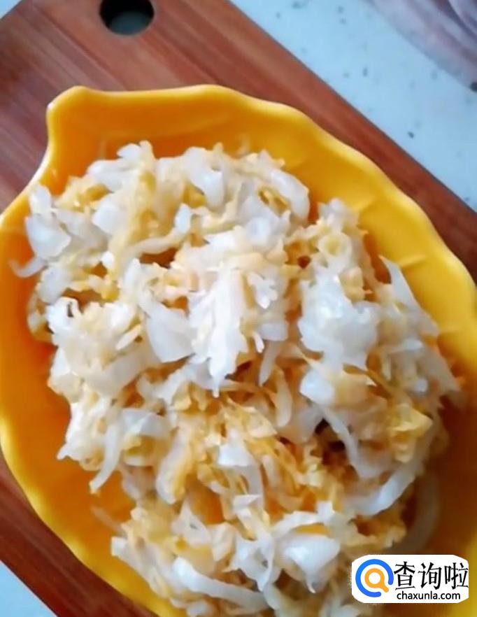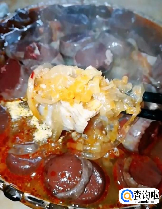 最后讲血肠切块,在菜汤中焯一下捞出,摆入碗中,美味的杀猪菜就制作完成啦!