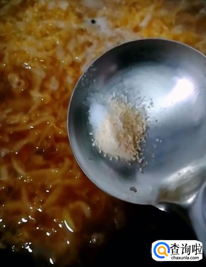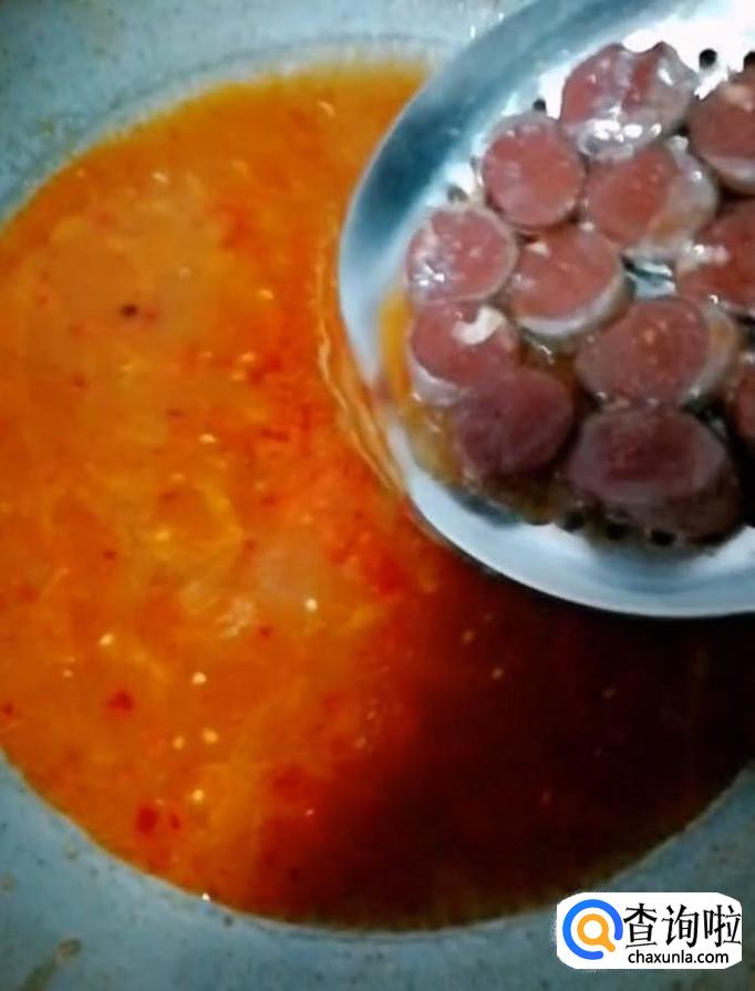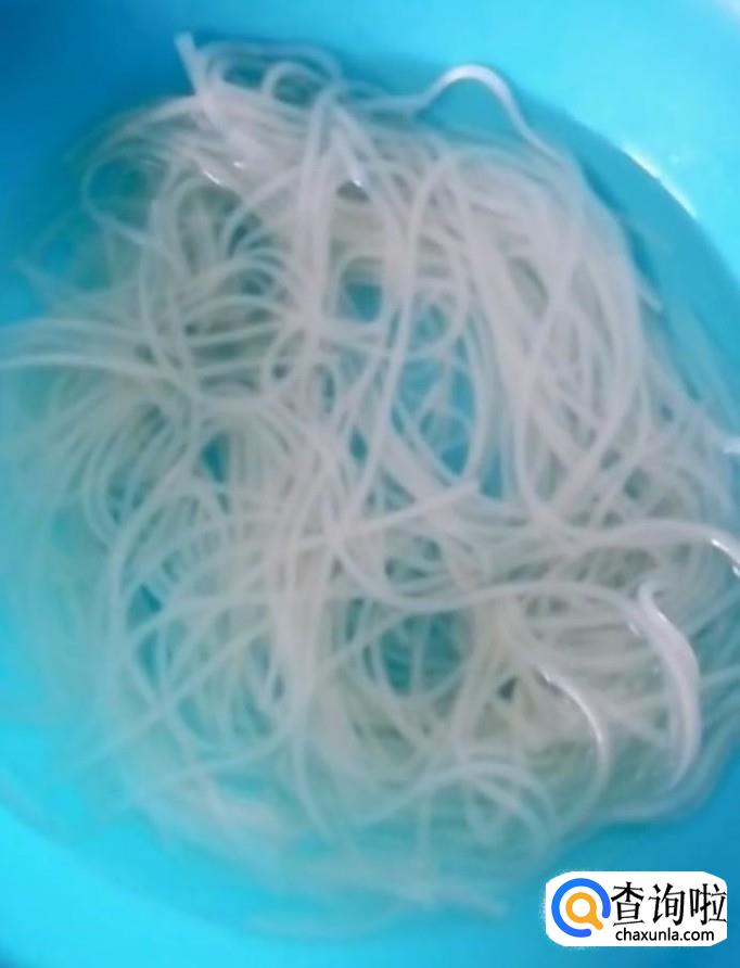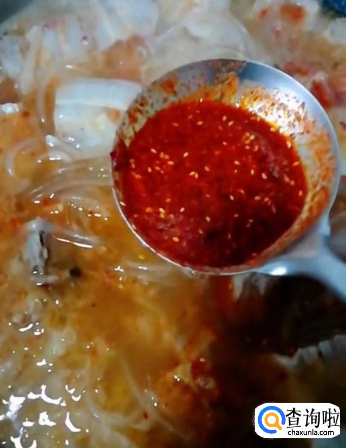 然后我们再把泡好的粉条放入锅中,加入适量的辣椒油,最好以后将菜盛入碗中,锅中留少许菜汤