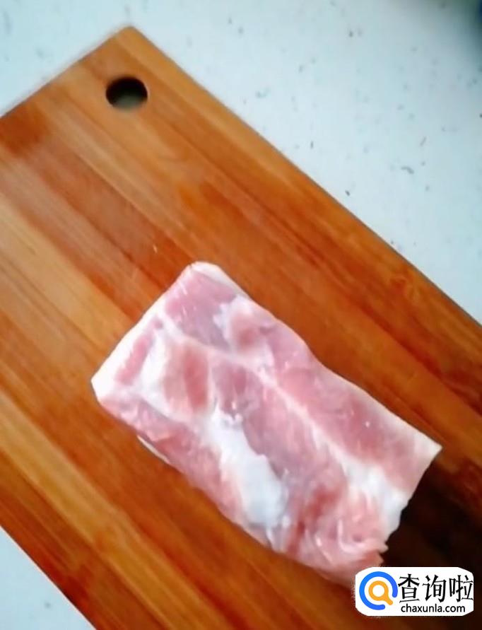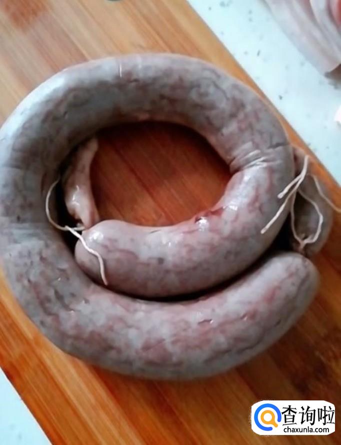 首先我们准备一块五花肉,适量的排骨,适量的酸菜,把粉条提前浸泡一下,再准备一根血肠