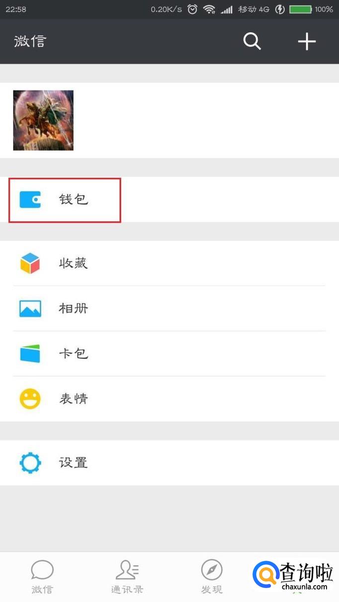 接下来,在打开的个人中心页面中,点击“钱包”菜单选项,进入微信钱包设置页面。