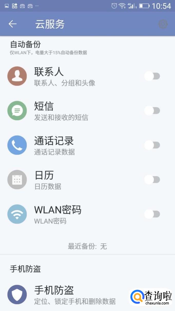打开【云服务】后,打开【手机防盗】开关