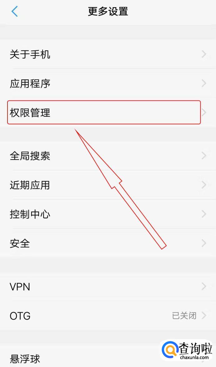 在更多设置里面找到“权限管理”。