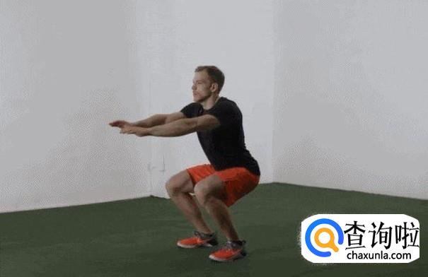 还有爆发力,需要下蹲来练习,全身性的练习,手伸直,下蹲,腿并拢,如图所示。