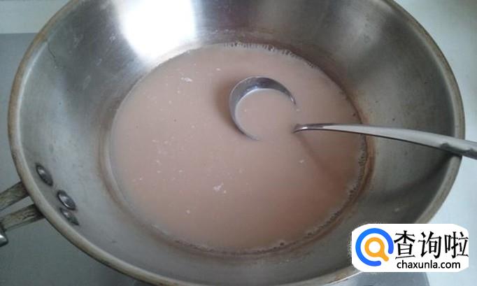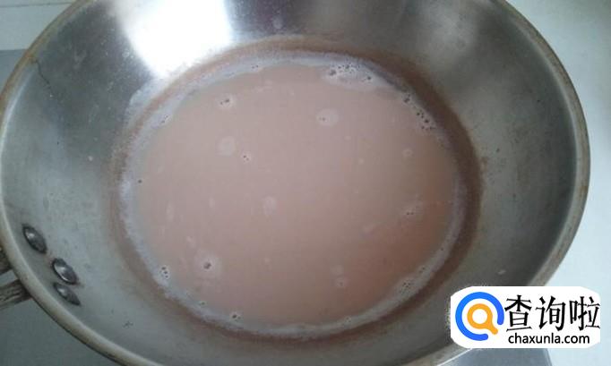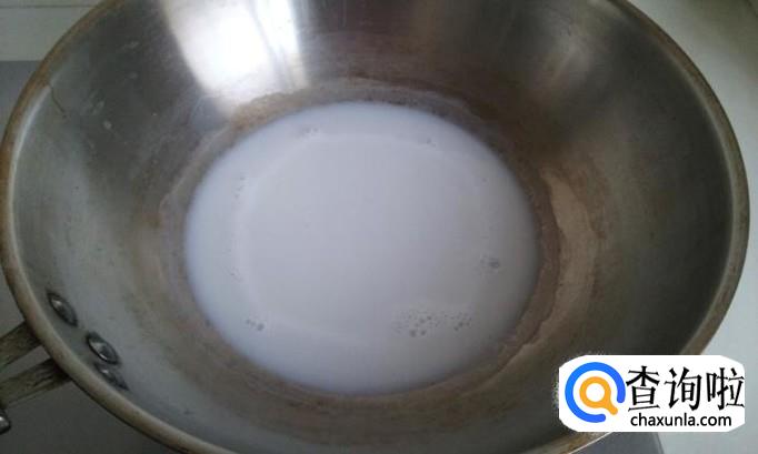 把牛奶放入煮锅里,大火把牛奶烧开煮熟。