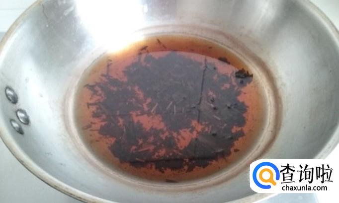 煮锅里放入适量清水,把砖茶入锅煮上5分钟,让茶叶的味道释放在茶水里。