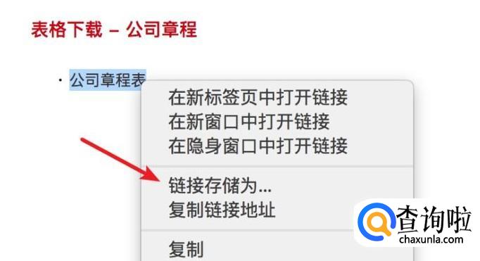 打开后,在页面下方找到公司章程的表格下载链接,点击打开它。