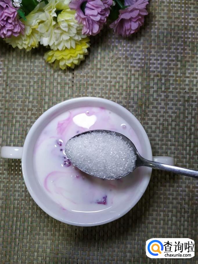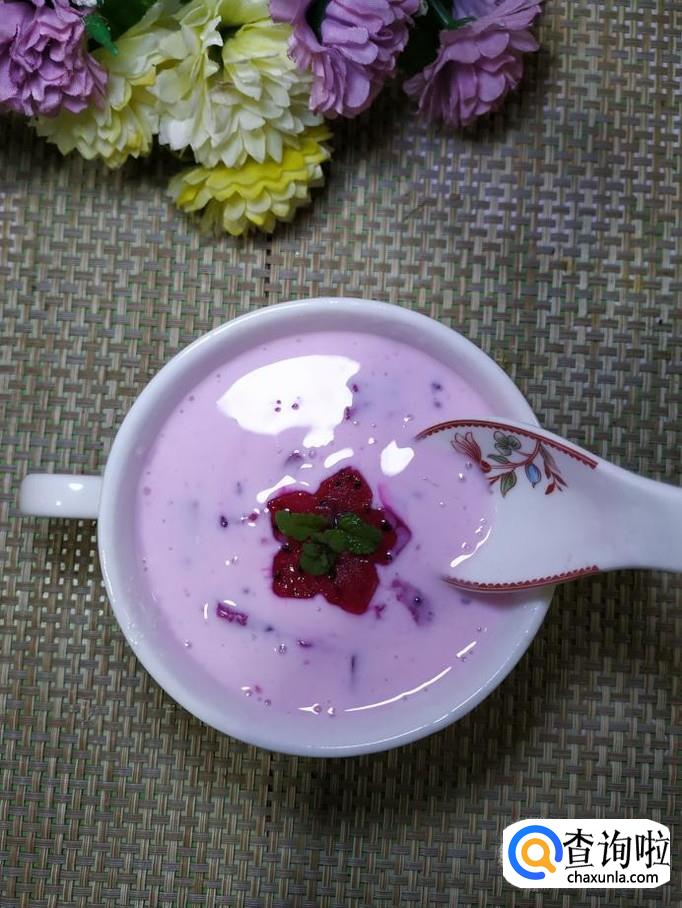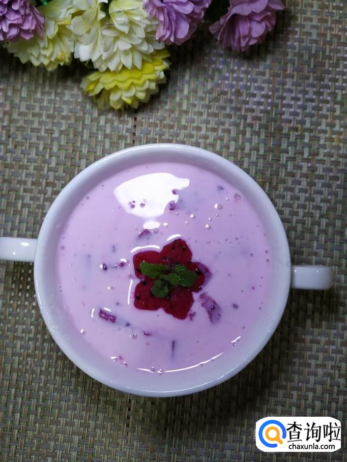 纯牛奶500毫升,酸奶100毫升,火龙果适量,薄荷适量,白砂糖适量。