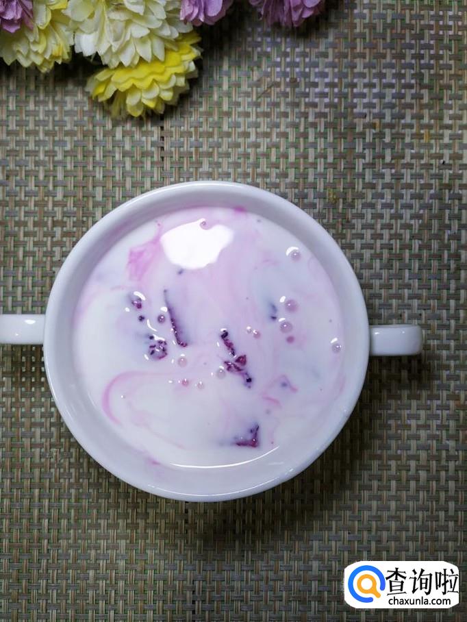 然后用模具将火龙果刻出一朵小花,放在酸奶上面点缀一下。