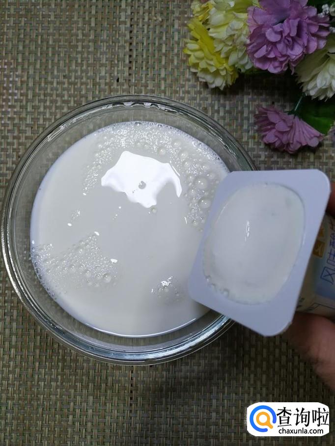 准备一个密封的容器,放入锅中,用开水煮一下,消毒后,将纯牛奶倒入容器中,然后再将酸奶也倒入容器中。