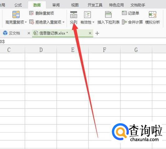 进入之后,点击“分列”,进入下一页面,如图所示。