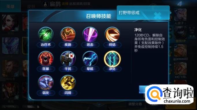 净化主要是解除负面效果,对于那些特别怕被控制的英雄,像是关羽之类的。