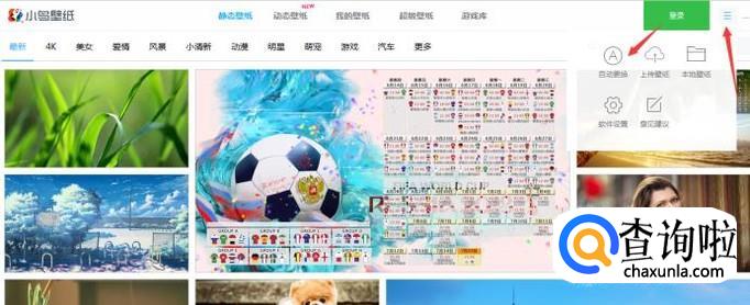 打开右上角的设置,可以设置壁纸自动更换,也可以设置我们下载到电脑的壁纸,上传壁纸等功能,很实用!