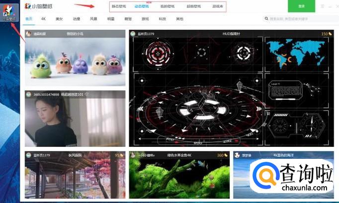 双击打开软件可以看到最上方有一个使用导航,包括静态壁纸、动态壁纸、超级壁纸和我的壁纸(就是自己收藏的壁纸),在这可以按自己需要来选择壁纸!