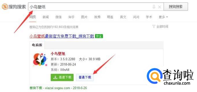 首先打开搜狗浏览器输入小鸟壁纸,下载并安装到电脑上,如下图。