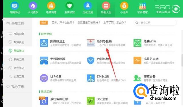 如果这种方式还没有作用的话可以打开断网急救箱工具。