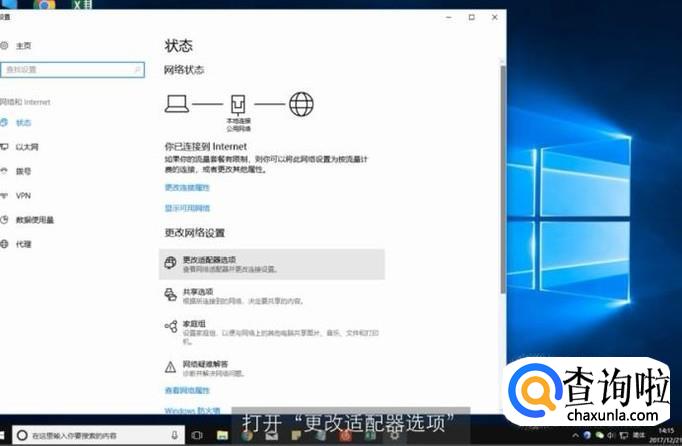 在网络图标上点击右键,打开“网络和internet设置”,打开“更改适配器选项”。