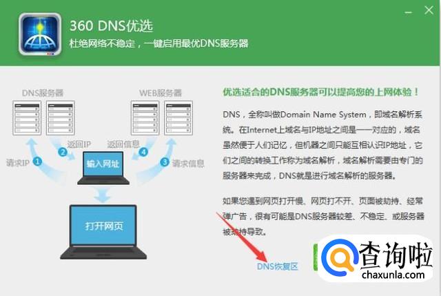 打开之后点击下面的dns恢复区。
