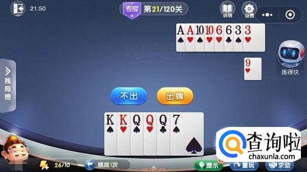 微信欢乐斗地主残局专家级难度第21关图文攻略