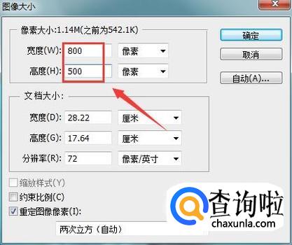 点击图像大小选项在弹出的对话框内设置图片的宽度和高度,这样我们就更该了图片的大小,如图所示: