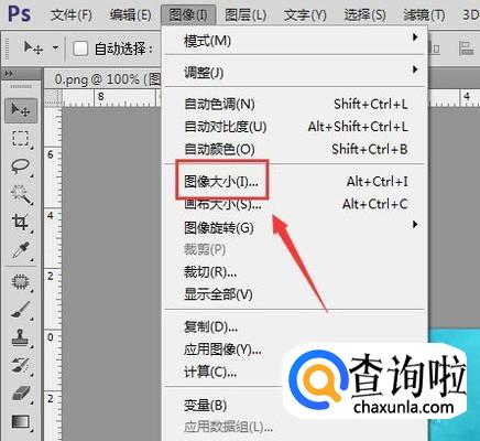 点击图像菜单,在其下拉菜单那里找到图像大小选项,如图所示: