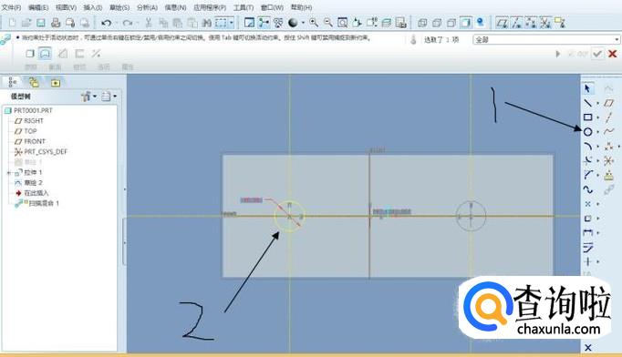绘制一个圆形,如图。绘制完后点击右下方的√。