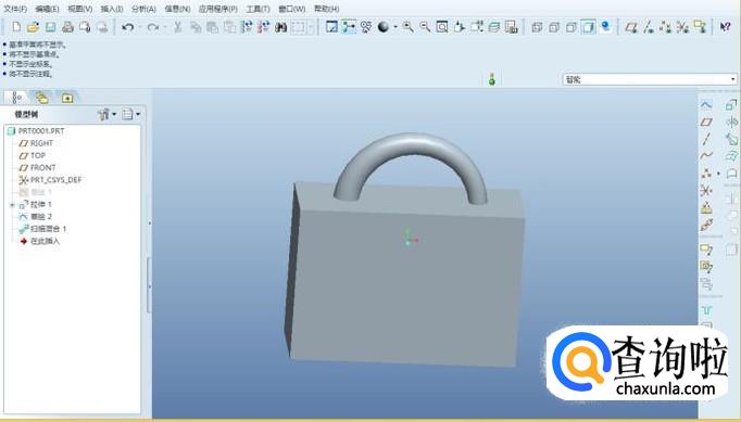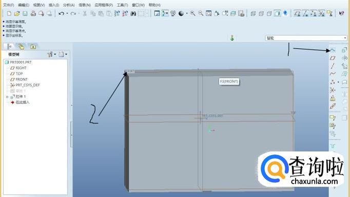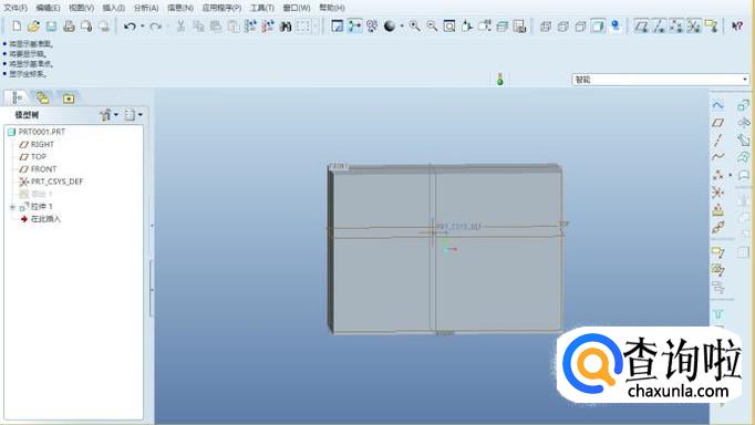 打开proe5.0,新建一个零件,再建一个长方体。如图