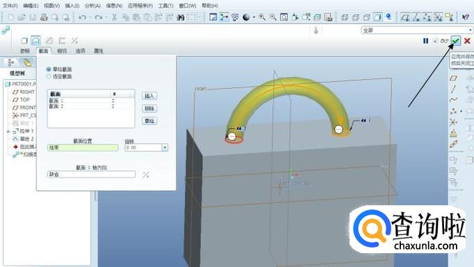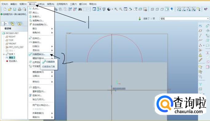 proe5.0中的扫描混合命令是非常好用的,可以设计出比较复杂的造型。下面就介绍一下扫描混合命令的用法。