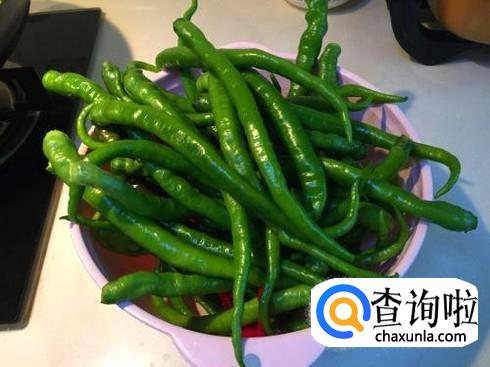 将辣椒一一挑拣,有虫子眼的不要,有腐烂的不要,挑拣好之后将辣椒泡进清水里,水里加上小苏打,浸泡半小时后清洗干净控干水分。