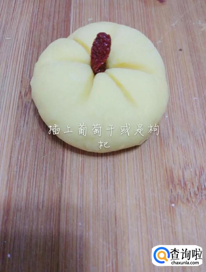然后在上面插上葡萄干或者是枸杞,如下图所示。