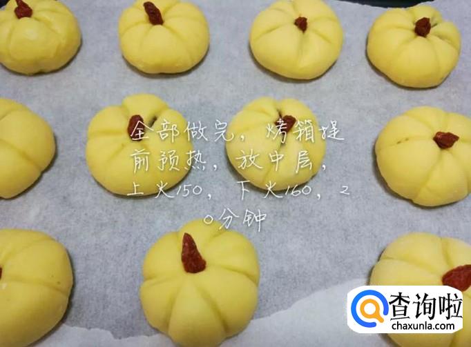 然后将烤箱提前预热五分钟,把南瓜发糕放进去,上火150°下火160°烤20分钟就可以了。