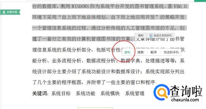 然后选中需要复制粘贴的文字,点击【复制】选项,即可复制成功,如下图所示: